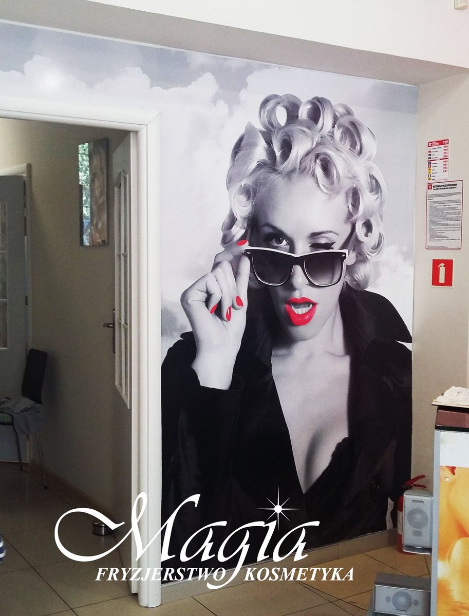 Fototapety na tablicach z PCV na ścianie salonu fryzjerskiego MAGIA.